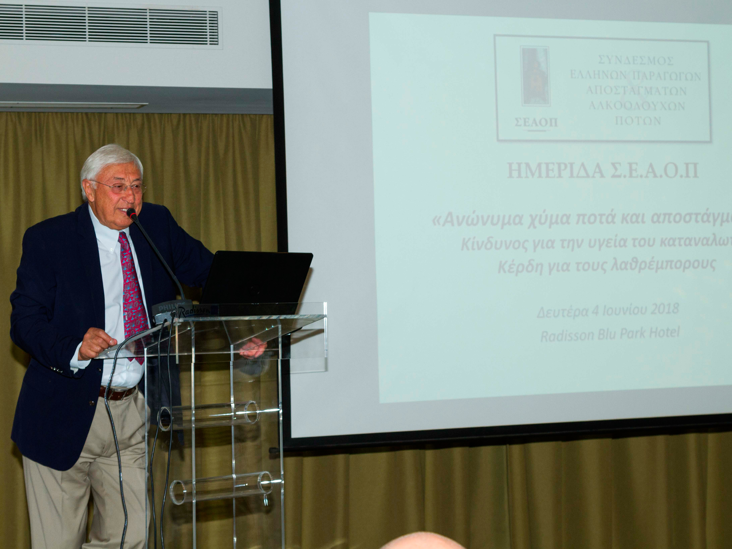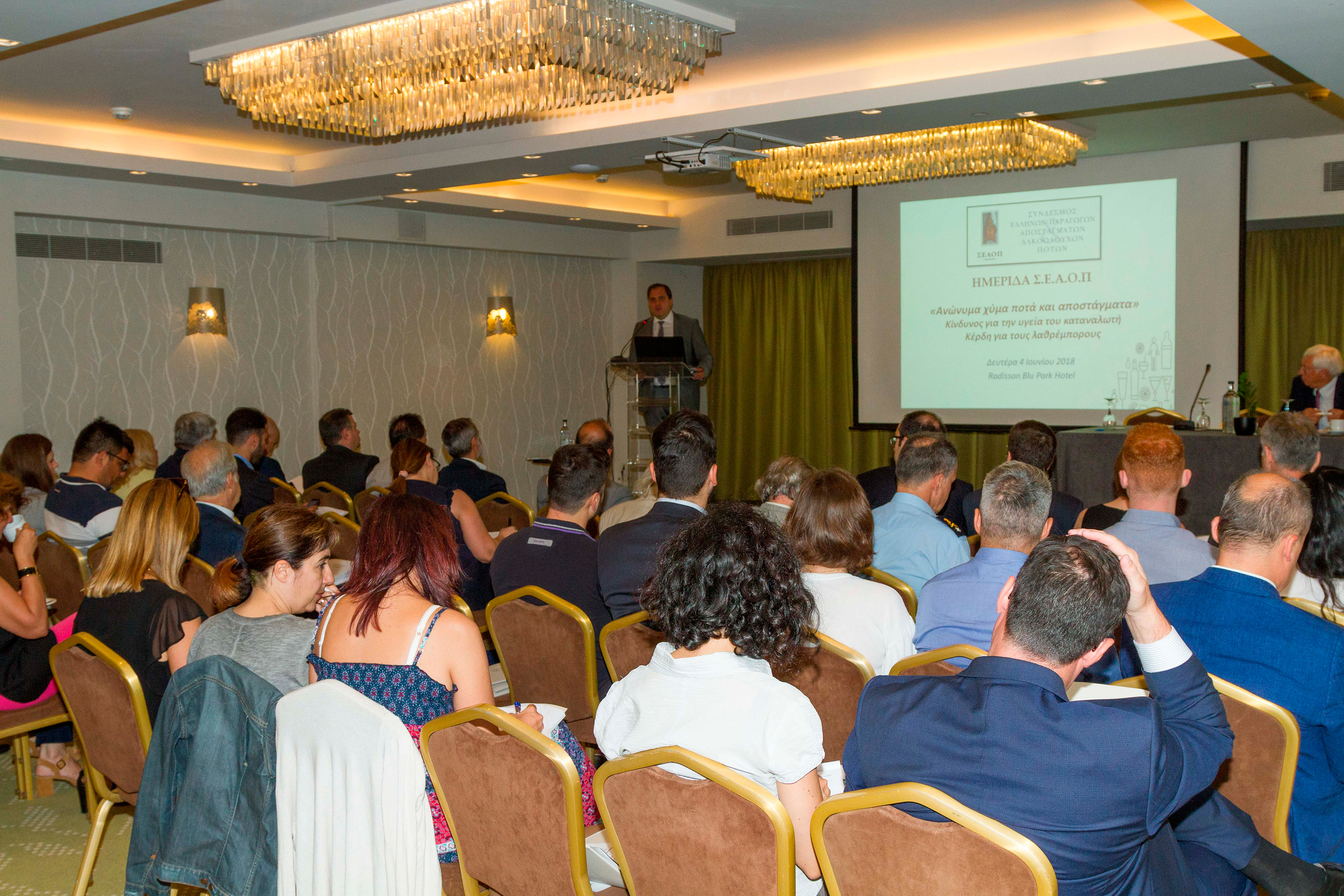 Η ημερίδα με θέμα «Ανώνυμα χύμα ποτά και αποστάγματα - Κίνδυνος για την υγεία του καταναλωτή – Κέρδη για τους λαθρέμπορους» πραγματοποιήθηκε στο πλαίσιο της Γενικής Συνέλευσης του Συνδέσμου, με μεγάλη συμμετοχή όλων των εμπλεκόμενων φορέων.